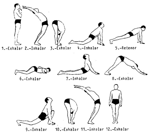 El saludo al sol, lleno de gracia y sencillez, es completo en sí mismo para recibir el nuevo día y a la vez un ejercicio de calentamiento indispensable, para preparar el cuerpo para la equilibrada experiencia de las asanas (posturas del yoga).